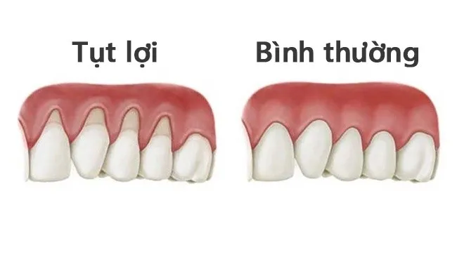- Tụt lợi có thể quan sát được: Phần lợi bị tụt xuống rõ ràng. Nó có thể nhìn thấy bằng mắt thường.