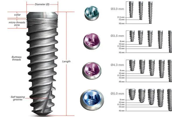 Mặt khác, mỗi người dùng đều có đặc điểm cung hàm và nhu cầu thẩm mỹ riêng. Mỗi thương hiệu sản xuất cũng xác định thị trường mục tiêu khác nhau. Do đó, trụ Implant được thiết kế với nhiều kích cỡ. Từ đó tạo sự phù hợp, đáp ứng nhu cầu đa dạng của người dùng.